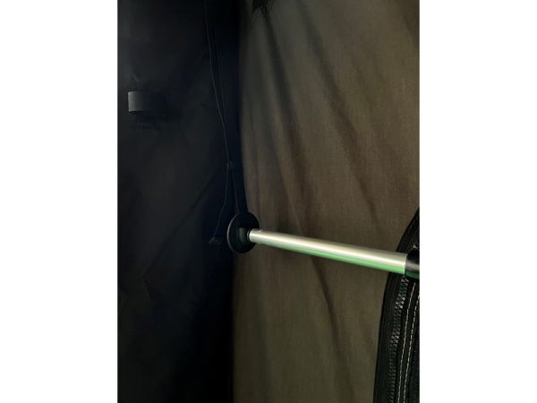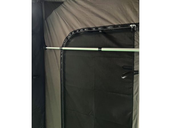 Bei Regen kann die Stange mithilfe der mitgelieferten Halterungen im Innenraum aufgehängt werden – ideal zum Trocknen von Jacken oder anderer Ausrüstung.